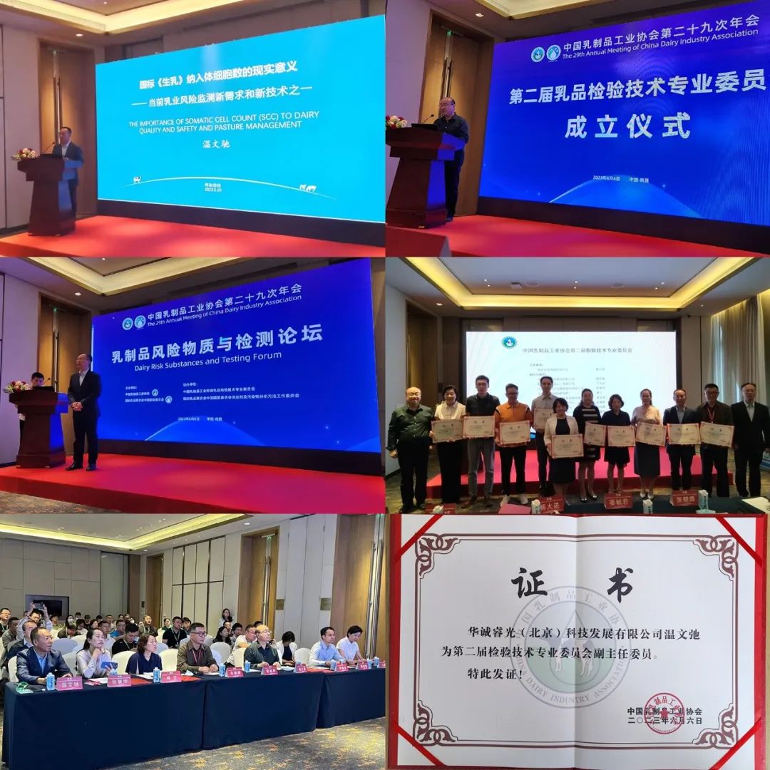 華誠睿光CEO溫文馳先生在【乳制品風(fēng)險(xiǎn)物質(zhì)與檢測論壇】作專題報(bào)告“國際《生乳》納入體細(xì)胞數(shù)的現(xiàn)實(shí)意義——當(dāng)前乳業(yè)風(fēng)險(xiǎn)監(jiān)測新需求和新技術(shù)之一”,并在第二屆【乳品檢驗(yàn)技術(shù)專業(yè)委員】成立儀式上被授予“副主任委員”證書。近年來,牛博士團(tuán)隊(duì)先后參與了兩項(xiàng)國家標(biāo)準(zhǔn)的修訂,分別為《食品安全國家標(biāo)準(zhǔn) 生乳 GB 19301》和《生鮮牛乳中體細(xì)胞數(shù)測定方法 NY/T800》,在乳品檢測領(lǐng)域的持續(xù)努力和專業(yè)水準(zhǔn)受到業(yè)內(nèi)廣泛高度認(rèn)可。