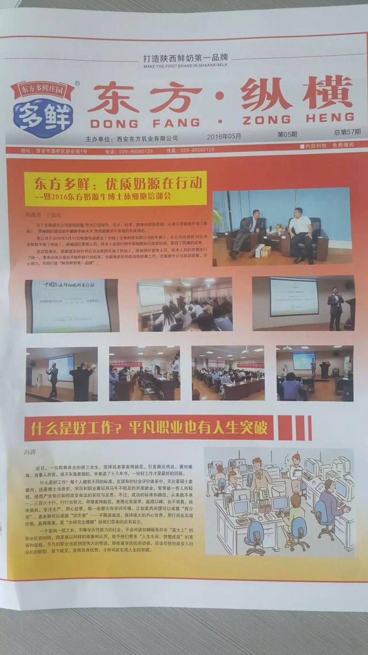 2016年5月,牛博士走進東方乳業,總裁溫文馳與總經理張先陽向參會的東方乳業的領導及技術人員做了報告,詳細的介紹體細胞對于乳企的重要意義,并在會后向大家展示牛博士Ⅲ型,讓大家真切的看到用牛博士牛奶體細胞檢測儀得到的實驗數據真實而******。之后東方乳業也對此次交流活動,做了大幅宣傳報道。內容如下: