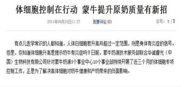 成立于 1999 年初的內(nèi)蒙古蒙牛乳業(yè)(集團(tuán))股份有限公司,總部設(shè)在中國乳都核心區(qū)。到目前為止,蒙牛乳業(yè)集團(tuán)已擁有液態(tài)奶、酸奶、冰淇淋、奶品、奶酪五大系列200多個(gè)品項(xiàng),產(chǎn)品以其優(yōu)良的品質(zhì)覆蓋了國內(nèi)市場。2011年2月蒙牛集團(tuán)奶源技術(shù)服務(wù)部與我公司合作,在蒙牛三大事業(yè)中心開展了奶源體細(xì)胞控制專項(xiàng)方案行動,成功的為蒙牛三大區(qū)域共計(jì)53個(gè)牧場建立了體細(xì)胞檢測體系并實(shí)施了降低體細(xì)胞數(shù)的整體解決方案,其中有26個(gè)牧場體細(xì)胞數(shù)明顯下降,平均下降25.26%,******下降幅度達(dá)69.2%。乳房炎發(fā)病率下降55.7%,乳脂率、乳蛋白率均提高0.08%,日單產(chǎn)量增加0.75公斤,獲得了可觀的經(jīng)濟(jì)效應(yīng)。國內(nèi)主流媒體如騰訊網(wǎng)等均對此項(xiàng)工作做了大量報(bào)道,獲得蒙牛集團(tuán)及牧場的一致好評。(見附件七)