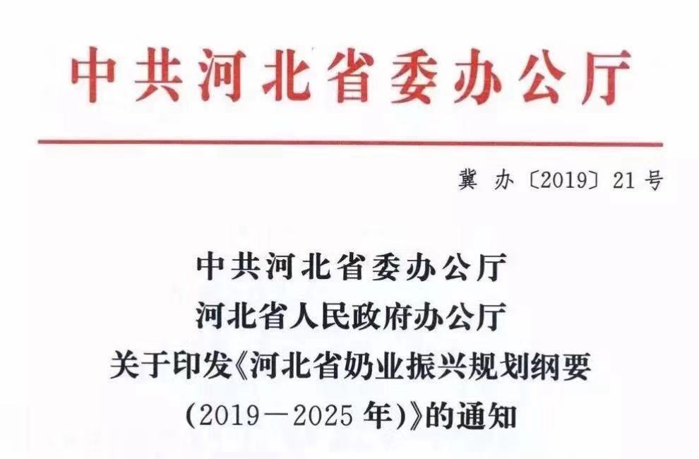 為貫徹落實《國務(wù)院辦公廳關(guān)于推進奶業(yè)振興保障乳品質(zhì)量安全的意見》(國辦發(fā)〔2018〕43號),河北省、江蘇省相繼出臺《河北省奶業(yè)振興計劃綱要(2019-2025年)》、《省政府辦公廳關(guān)于推進奶業(yè)振興保障乳品質(zhì)量安全的實施意見》(蘇政辦發(fā)〔2018〕93號)新政策。