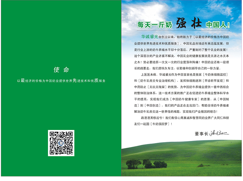 華誠(chéng)睿光(北京)科技發(fā)展有限公司專注于【牛奶體細(xì)胞數(shù)監(jiān)控】和【奶牛乳房炎專業(yè)治理】,致力于打造【一站式奶業(yè)服務(wù)平臺(tái)】,并堅(jiān)持【以經(jīng)濟(jì)的價(jià)格為中國(guó)奶業(yè)提供******先進(jìn)技術(shù)和優(yōu)質(zhì)服務(wù)】的使命!15年來(lái),以先進(jìn)的技術(shù)和理念、優(yōu)質(zhì)的產(chǎn)品和服務(wù)得到了中國(guó)乳業(yè)的廣泛關(guān)注和認(rèn)可。